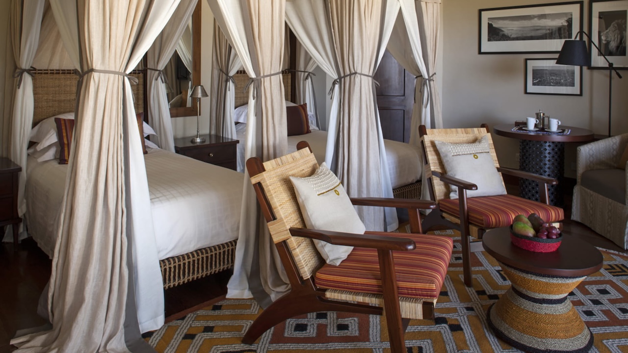Resident guides lead twice-daily game drives, plus sunrise hot-air balloon safaris, Maasai Boma Grill evenings, torchlit bush dinners, cultural village visits, wine-paired dinners in The Vineyard cellar, and interactive sessions at the Discovery Centre.